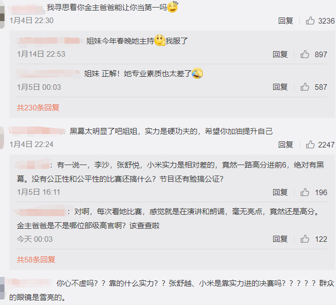 而另一位一样是主持人大赛出身的张舒越也是来头不小。比起尹颂,张舒越成为春晚主持人的一员遭到了网友们的各种质疑,恶评也纷纷涌现。