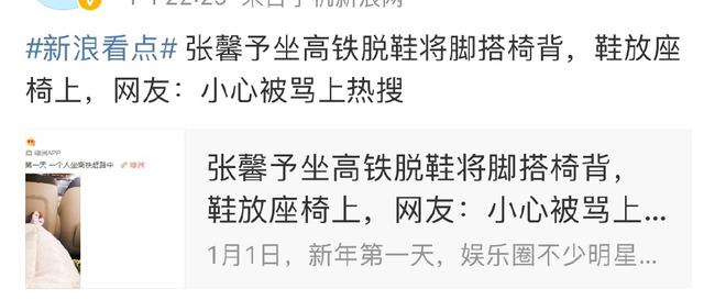 张馨予坐在高铁座位上,身上盖着羽绒服,不知道的人还以为她是把脚架在了前面座椅的背后,总觉得有些不雅观,而且在公共场合还把鞋子脱掉了,这不应该是一位军嫂该做的事情啊,造成了很不好的影响。所以难免有些网友容易多想。