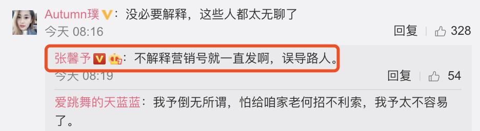 张馨予回应表示:不解释营销号就一直发啊,误导路人。