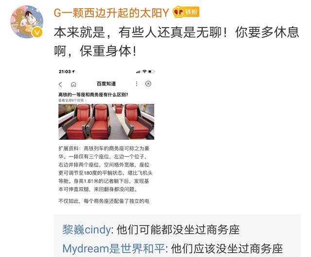 舟舟倒也觉得张馨予出来解释一下比较合适,很多营销号也没能看出来这是商务座,不解释张馨予被骂没素质,何教官可能也要受牵连。