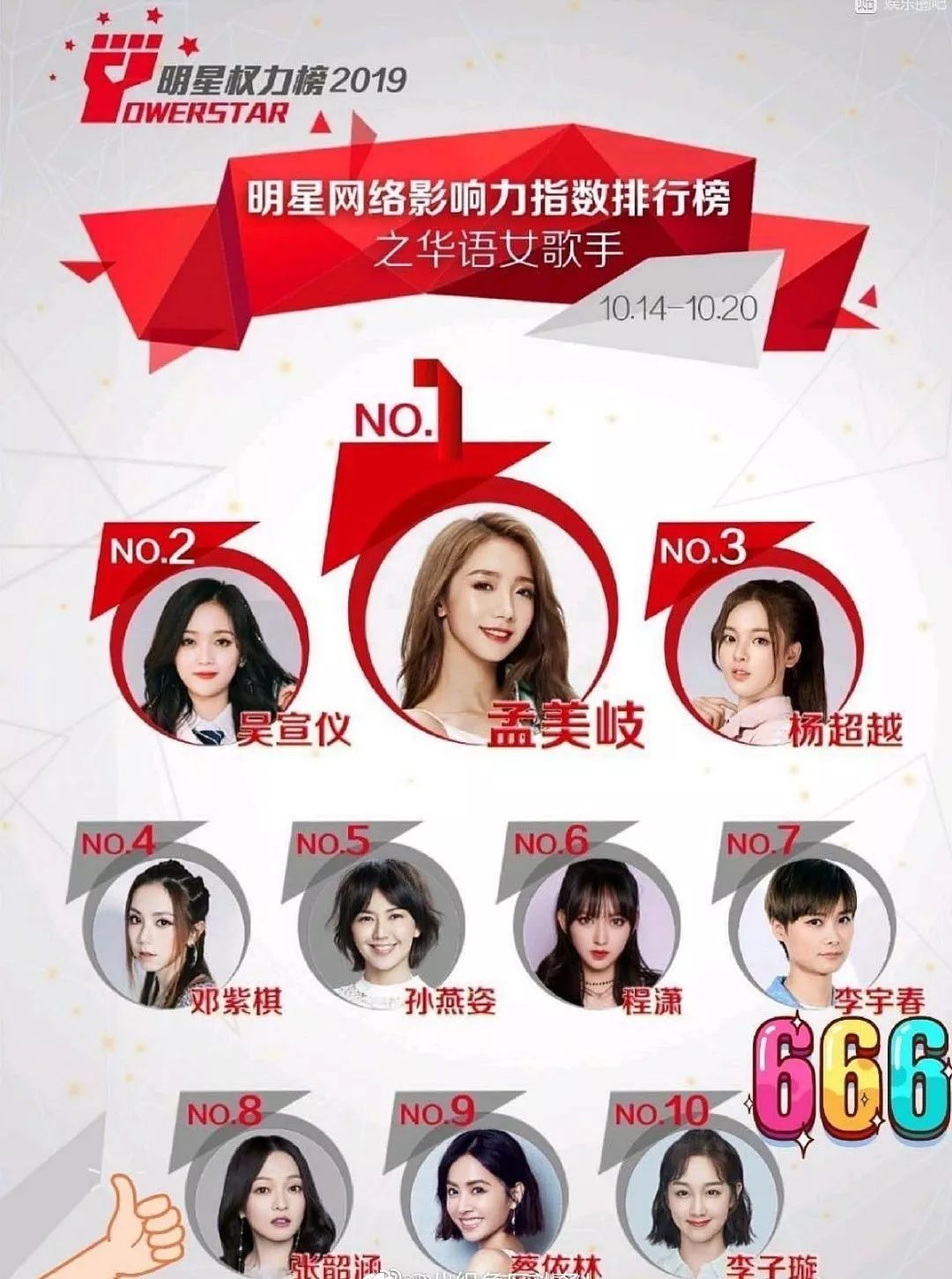 嗯,你们没看错……差不多就这样了,然后就登顶华语女歌手影响力的排行榜。不过这就是粉丝投票的榜单吧?所以咱们看看就好了。