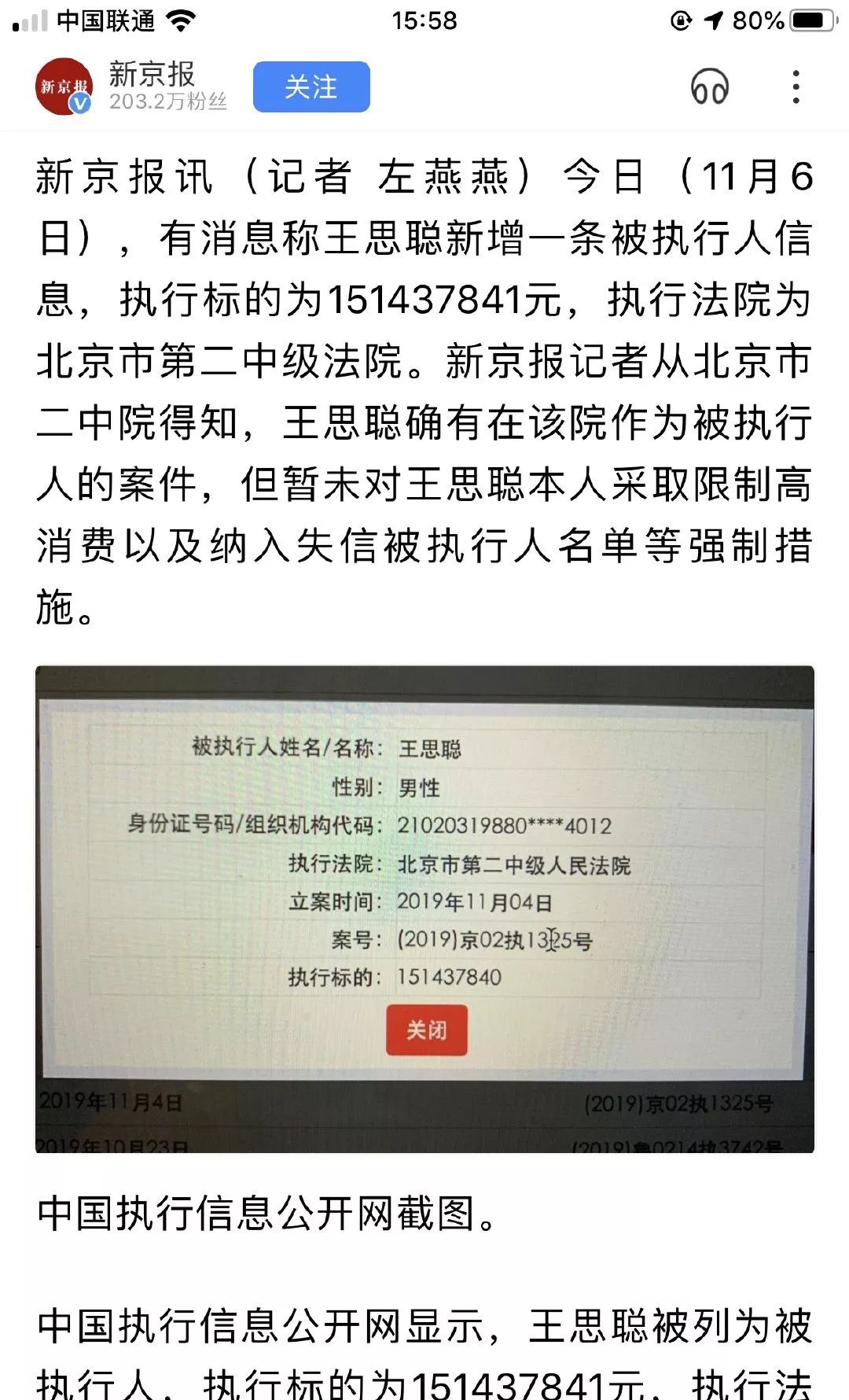 王思聪被点名“老赖”
