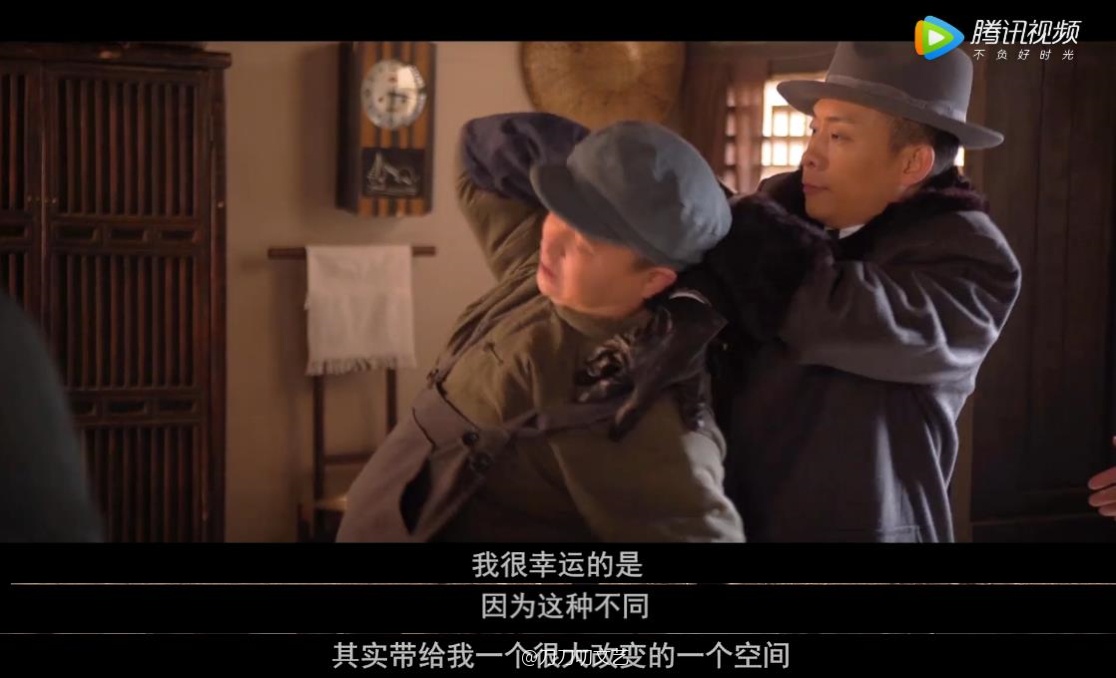 被追捕中,他脱下大衣、身着长衫,脚步一变,从容变装成“瘸子”,仿若《我的团长我的团》孟烦了附体。