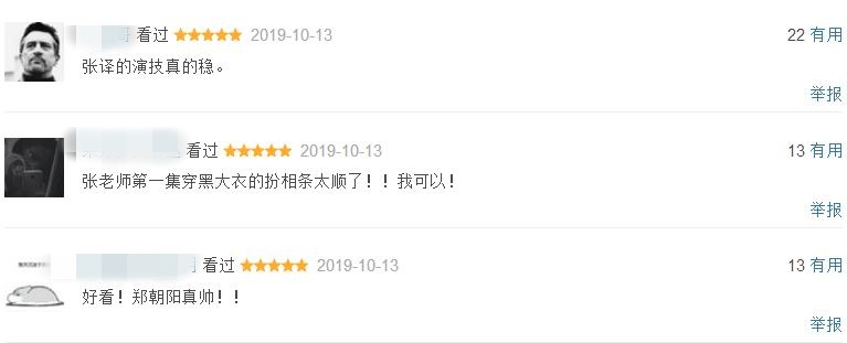 追剧的网友们评论说:“有张译、定无敌”“电影级画质,一如即往精湛的演技”“故事情节紧张、诙谐、角色设定真实”。