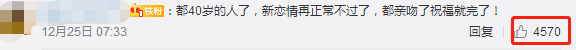 12月25日,台湾知名女歌手陈绮贞被台媒拍到和一名眼镜男在大街上激吻。“文艺女神”陈绮贞疑似新恋情刚曝出,网友们纷纷送上祝福,表示:“都40岁的人了,新恋情在正常不过了,都亲吻了祝福就完了!”