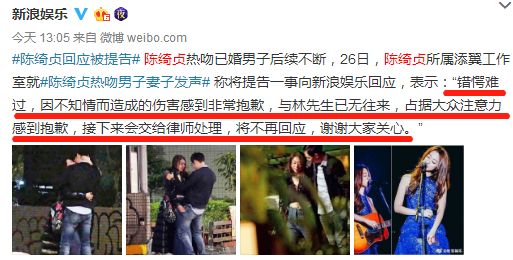 陈绮贞方知道林妻的发声后,回应被提告一事,表示:“错愕难过,因不知情而造成的伤害感到抱歉,与林先生已无来往,接下来将会交给律师处理,将不再回应。”