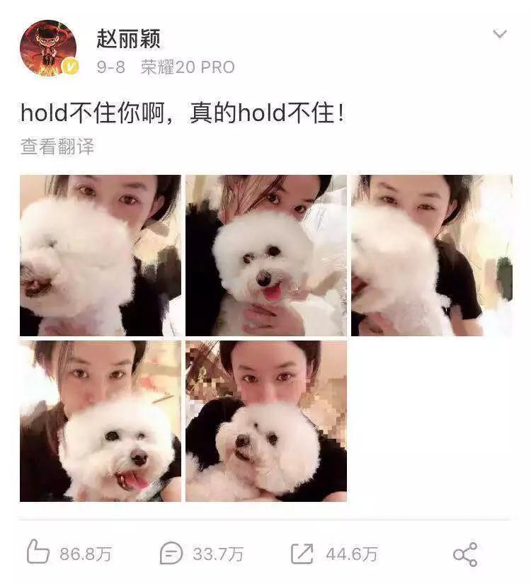 她的日常也很精彩,9月份微博po的与狗狗的合照,素颜也真的很抗打,皮肤精神状态都在线。