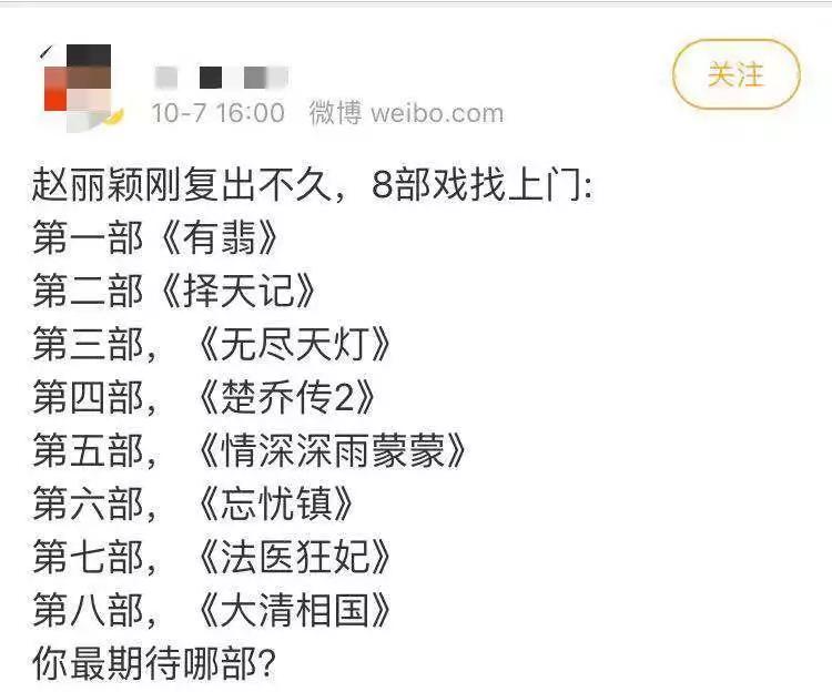 也有消息说现在已有8部剧找上门了,《有翡》结束后还将无缝进组合作郑晓龙新剧《不得往生》,果然就算是生孩子也挡不住赵丽颖的优质资源。