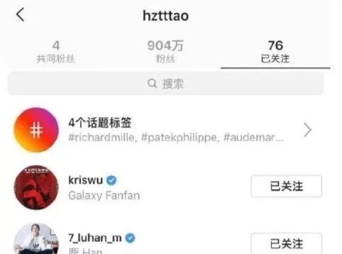 先是凡凡这边的ins关注情况,同时关注了涛涛和鹿晗。