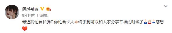 原标题:马丽发文官宣怀孕喜讯:和大家分享
