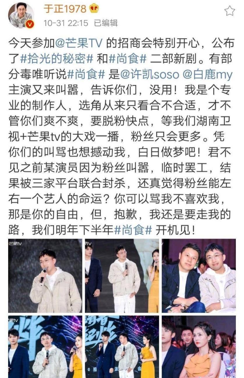 一部电视剧里男女主角最后沦为预告cp,这确实很不正常。不过大家都知道,于正对旗下艺人向来都很“护犊子”,当时白鹿被喷,他也是站出来力挺,发文称会对造谣诽谤的人“坚决告到底”。小扒觉得与其花时间在这上面,还不如指导白鹿提升一下演技更好一点呢。