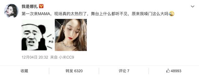 4日晚间,古力娜扎回应:第一次来MAMA,现场真的太热烈了,舞台上什么都听不见,原来我嗓门这么大吗?