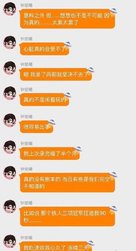 除了陈伟霆,这一节目的另一位嘉宾钟楚曦,也在高以翔去世之后爆料该节目难度太大,有一个环节甚至让一个铁人三项的冠军狂追她九十秒,这也让她录制了两期就决定退出。