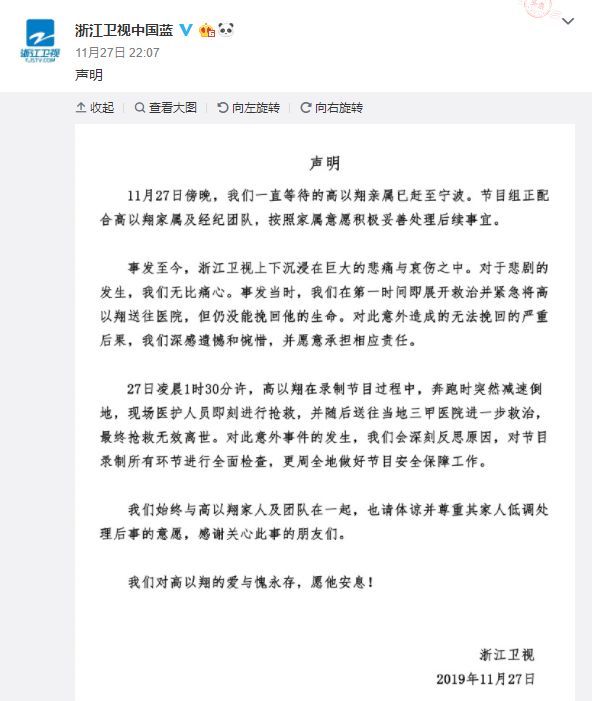 11月27日这一天,曾经出演过《遇见王沥川》中王沥川一角的演员高以翔,因为录制浙江卫视的节目《追我吧》,发生意外猝死现场。