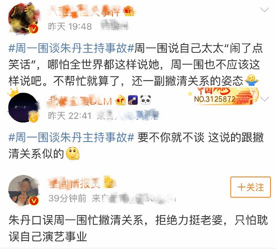 周一围谈朱丹主持失误,坦言自己拒绝了为妻子发声,称是职业要求
