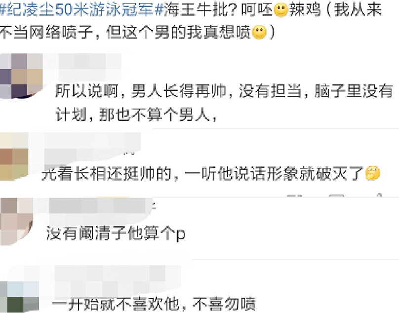 纪凌尘在男子50米游泳赛中,他以28.83秒的优越成绩获得冠军,此消息很快就被外界传开,纪凌尘被推上了热搜被更多人议论。