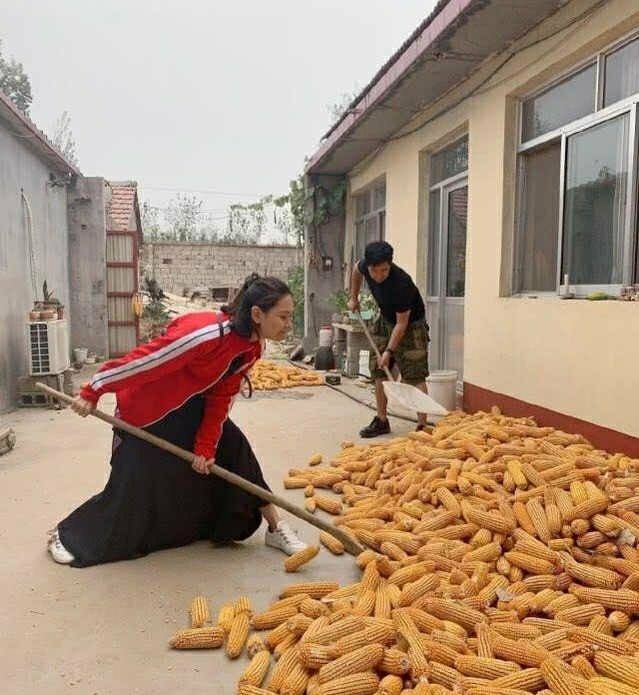 除了几张美美的照片,程莉莎还帮着家里干起了农活,10月份恰逢农村在秋收,夫妻俩一人手里拿着一把铁锹,把散开的玉米铲到一堆去。看郭晓冬这娴熟的动作,就知道小时候肯定揽收了不少家务活。