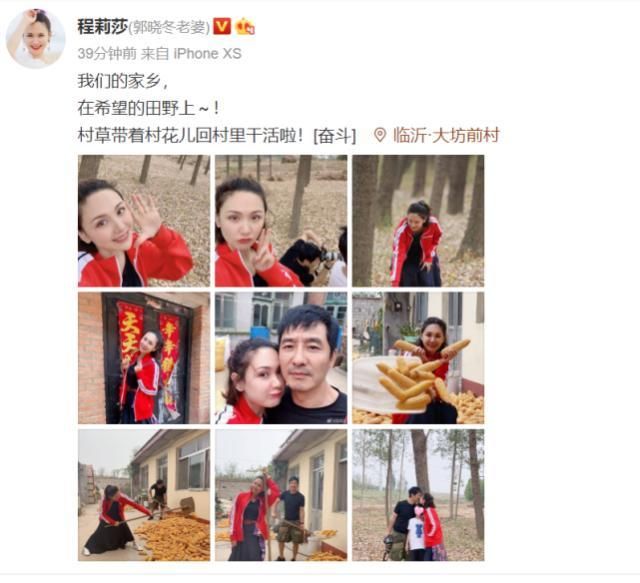 近日,程莉莎在公共平台晒出国庆出行的九宫格照,并配文:“我们的家乡,在希望的田野上,村草儿带着村花儿回村里干活了”。后面还附上了定位,是在山东临沂的某个小村庄,正是郭晓冬的出生地。