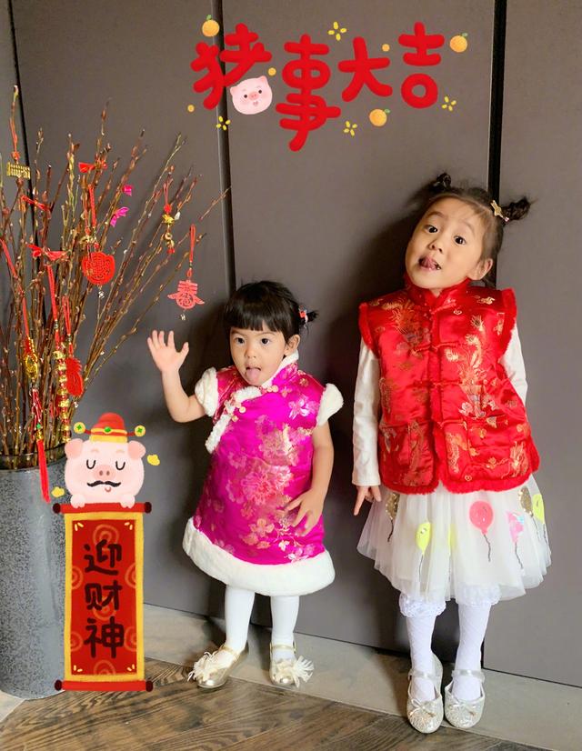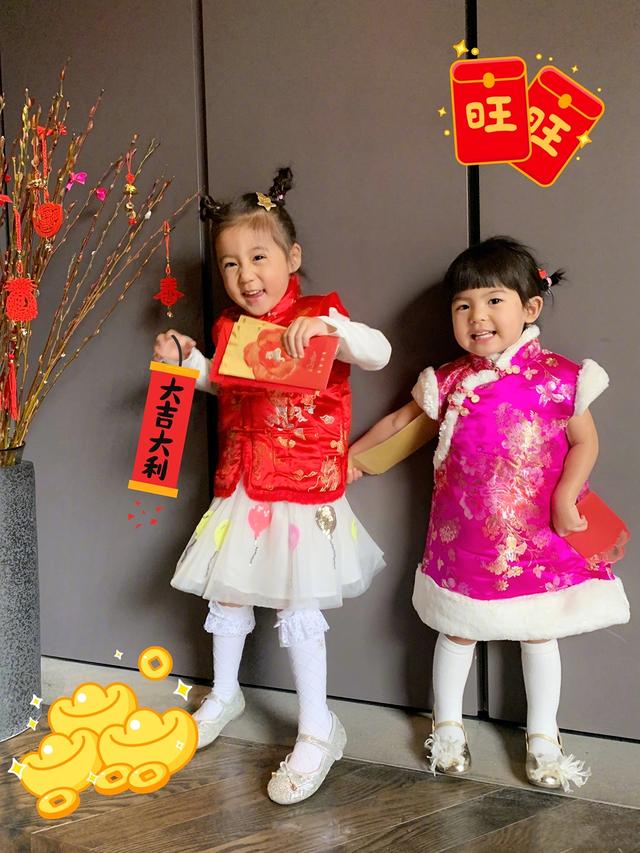 记得去年春节咘咘波妞都扎了哪吒头,穿着唐装,就像皇宫里高贵的公主。