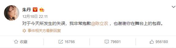 不过话说回来,人非圣贤孰能无过,再经验老道的主持人也是会发生“翻车事故”,关键是要吸取教训,保证以后不再继续犯错。可让人费解的是,刚过完一个礼拜的时间,朱丹又发生了主持事故,在某活动现场把当红流量小生陈立农给叫成了“赵立农”,而且还给叫错了两次名字,作为晚辈的陈立农出于尊重和礼貌,一直隐忍没有现场纠正朱丹的错误,最后朱丹如法炮制上次的道歉,又特意向陈立农公开道了一次歉。
