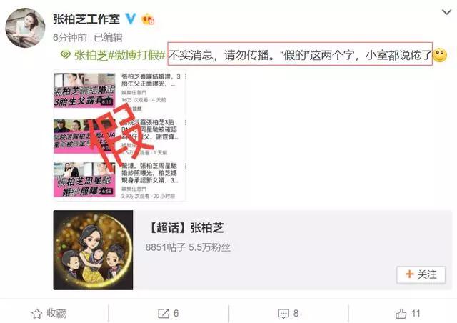 造谣成本太低,张柏芝只得借助工作室的微博账号回应“假的”,不实消息,也希望大家不要传播。