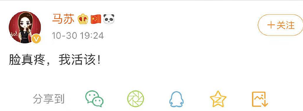 马苏出来蹦跶了,发微博说自己脸疼活该。