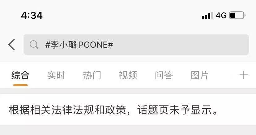 就算你主动去搜#PGone 李小璐#这个话题,都搜不出任何界面。