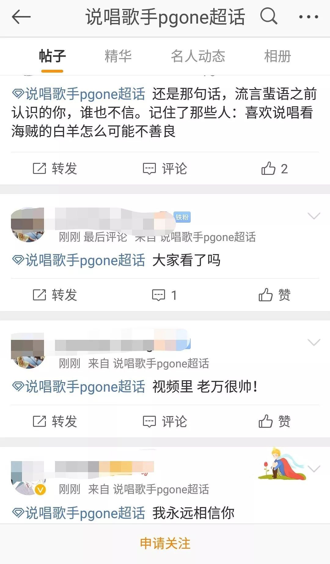 和PGone一块唱过嘻哈的rapper也曾出面爆过PGone帮嫂子养孩子的料,但最后不了了之。