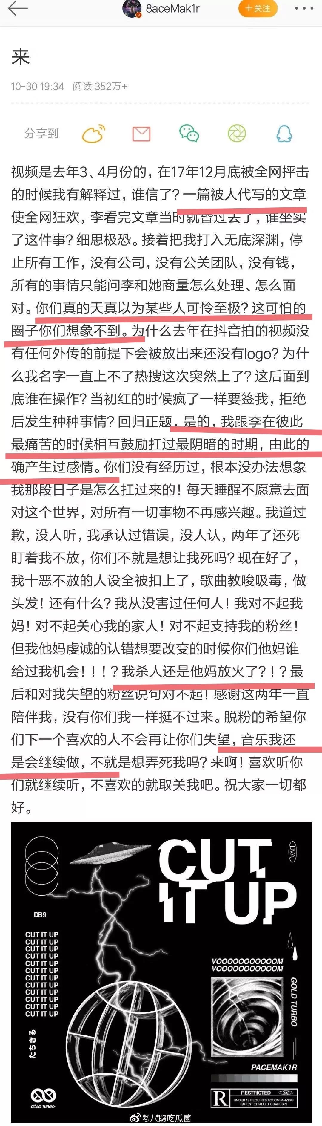划划重点就是自己很委屈、和李小璐是真的但是确定关系是在“夜宿门”之后、贾乃亮之前锤他们的文章是有人代写的以及背后有人在搞他。