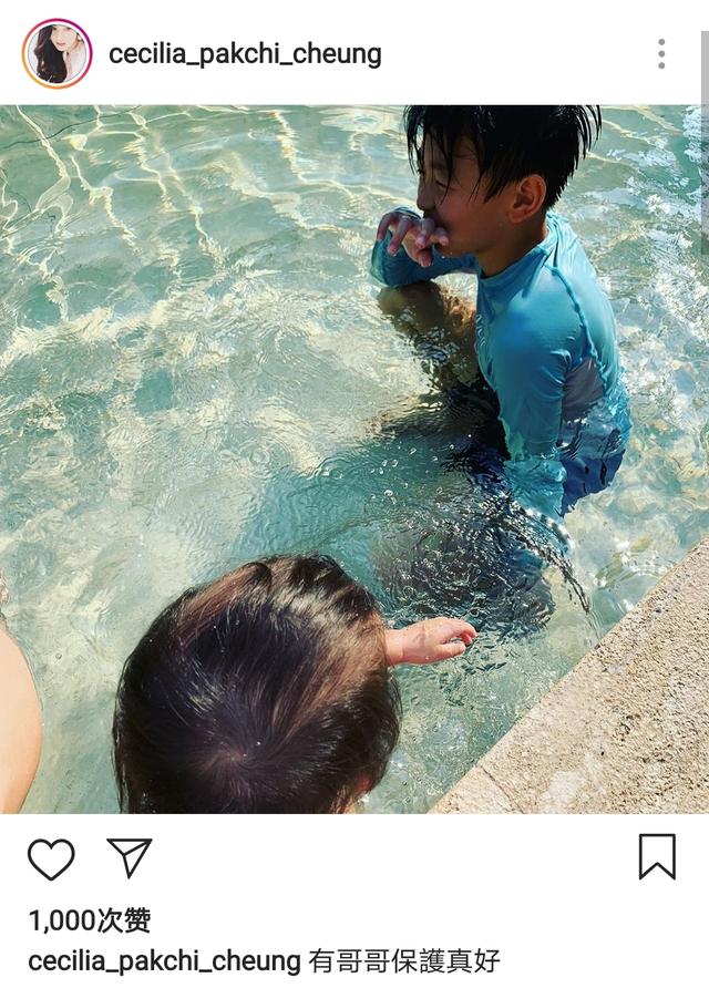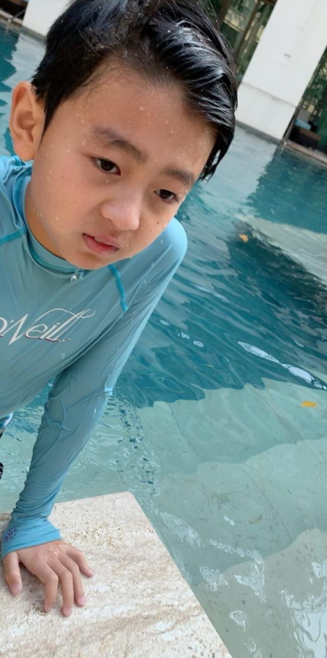 不过三儿子的正面照,张柏芝始终是没有主动晒出过,通过肉肉肥肥的胳膊,能够看得出真的是位肥BB。根据照片背景来看,他们应该是在某度假酒店的泳池里。