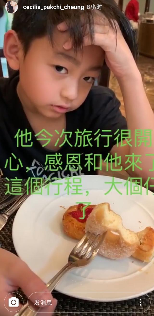 就连吃饭时,也不忘拨弄头发,保持自己的帅姿。张柏芝感叹,他这次旅行很开心,感恩他来了这个旅程,是个大孩子了。