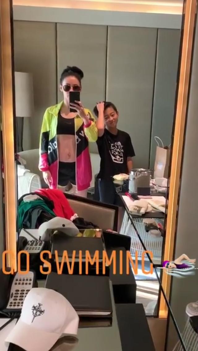 原标题:张柏芝穿泳衣秀好身材,小Q太像谢霆锋,怀里三胎肉嘟嘟超萌