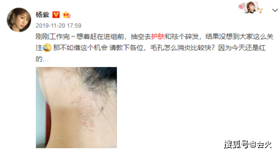 这组照片一曝光,关于杨紫“整容”的传闻再次喧嚣而起。不过杨紫很快也回应称她是为了拍戏有更好的状态,而专门去医院护肤和祛碎发。杨紫还很实诚地晒出了自己祛完碎发之后毛孔发炎的照片。