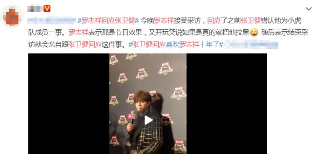 9号晚上罗志祥在出席某活动时,自然不会被媒体错过这个新鲜话题,问到被张卫健认错是什么感受,罗志祥表示那只是节目效果,开玩笑说如果是真的就把他拉黑了。