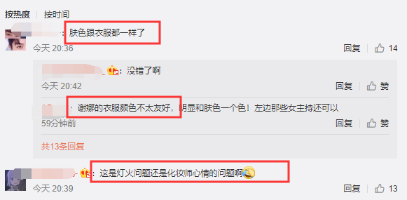 当然目前谢娜在湖南卫视的咖位是第一,不论专业程度。可小8要吐槽的是如果真想突出她的位置可以给她礼服,但这个礼服不能跟蜡黄的脸色一样。许多网友也吐槽了这个问题,可能是现场的灯光师也缺少电量吧,整台晚会上所有人面色都显得黑黄。
