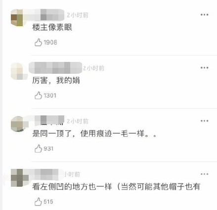 细心的网友还发现就连左侧的帽子凹陷都是一模一样的。