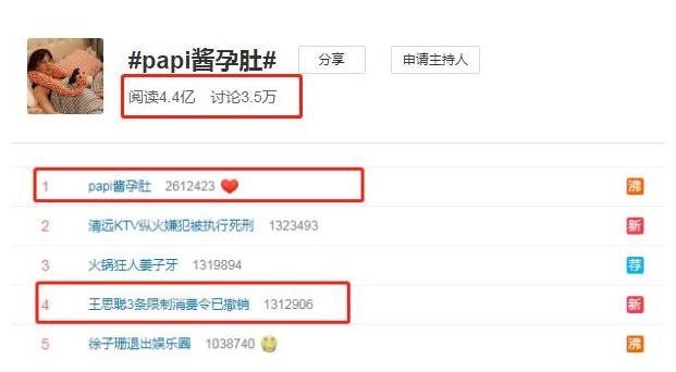 就是这么简单几张孕肚照片,没想到却迅速登上各平台热搜榜单前列,在微博热搜中甚至超越王思聪消费令撤销的消息,这个话题的阅读量也高达4.4亿。对此有网友笑称Papi酱太接地气,身为3000多万粉丝的超级大V,却一点也不注意自己的形象,看起来甚至有种跳过生娃直接坐月子的错觉。