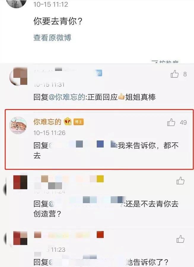 当时有网友还问她是去参加青你还是创作营,她回复:“都不去”。
