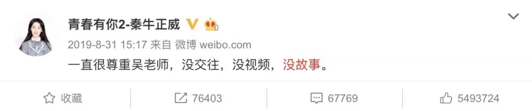 一边在微博上给大家澄清:一直很尊重吴老师,没交往,没视频,没故事。