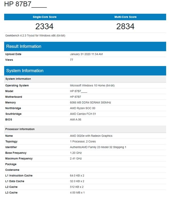 近日,GeekBench数据库里出现了一款神秘的“ AMD 3020e with Radeon Graphics”,对应正式型号应该是速龙3020e,也是一颗APU。