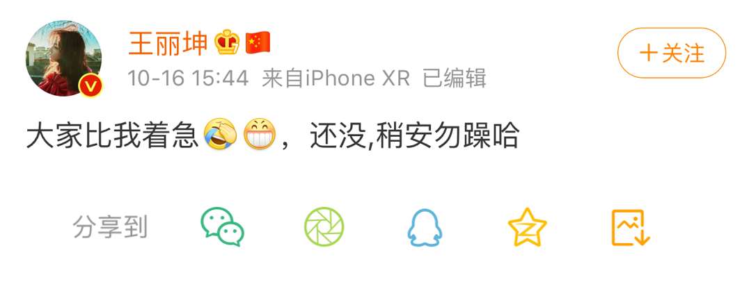 随后,王丽坤立即在个人社交平台发文否认结婚传闻,但并未否认与富商男友的恋爱。