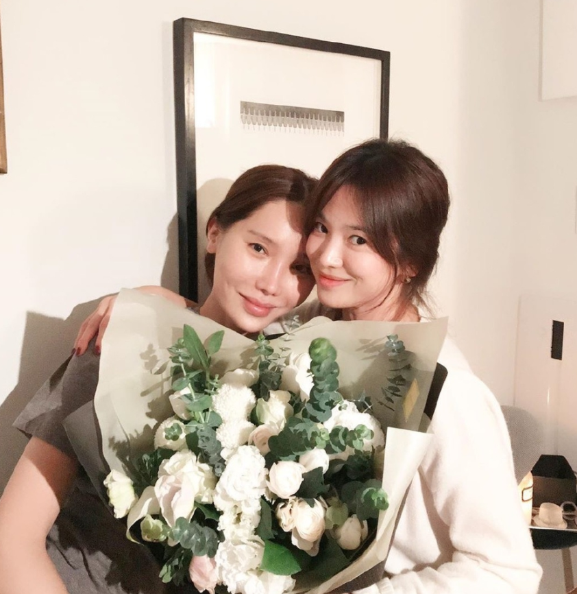 10月22日,是宋慧乔的生日,当天凌晨时分,有两位友人在社交平台晒照为乔妹庆生。照片中她手捧一大束鲜花,分别与两位友人拍照留念,她嘟起嘴巴,状态如少女一般,完全不像是离过婚的女子。