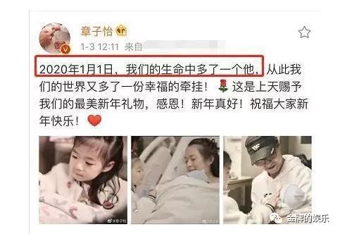 1月3号12点11分,章子怡在微博官宣:我们的生命中终于多了一个他!