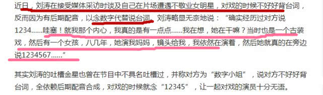 其实有不少业内人士都爆料过,确实有演员这么干,也有的剧组为了赶时间,碰到很多拗口难背的台词,就让演员用12345给代替了。
