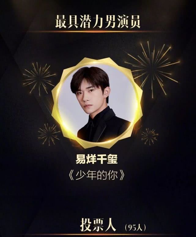 不仅如此,易烊千玺还获得了专业的影评人的肯定。在100位影评人当中,有95位都把“最具潜力男演员”投给了易烊千玺。