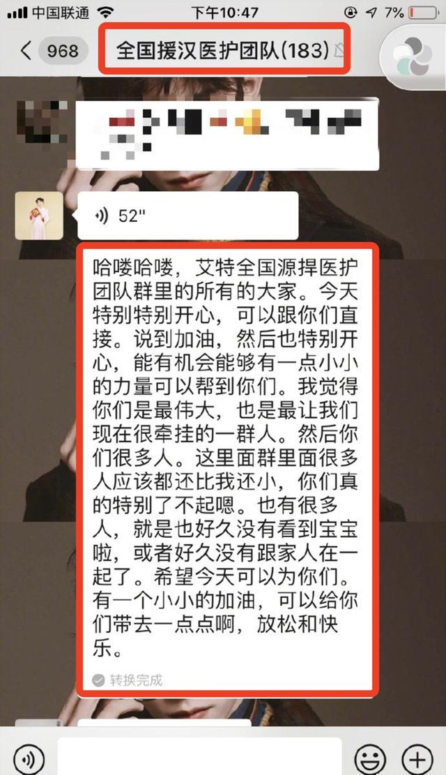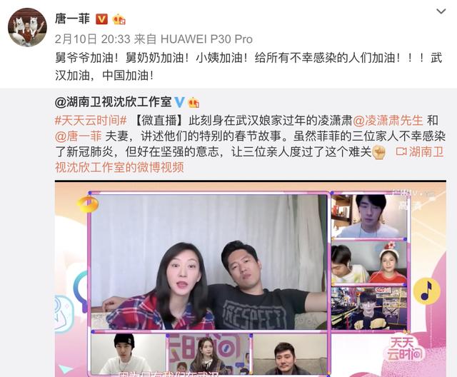 虽然聊天记录中并没有曝光唐一菲的语音,但是唐一菲也确实做了很多,她表示往年都住在北京,唯独今年春节待在了武汉,一家人都坚守阵地,没有离开。在大年夜的时候,唐一菲和凌潇肃一起下厨,并且给医护人员送去年夜饭。此外,唐一菲也有三位家人感染,但好在都挺过来了,作为亲属自然是更加感激医护人员的付出的。
