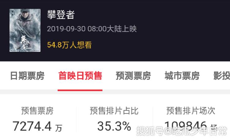 在上映前期,各大影院都会对即将上线的电影进行票房预售,《攀登者》等三部电影也不例外,同样进行着预售票房。