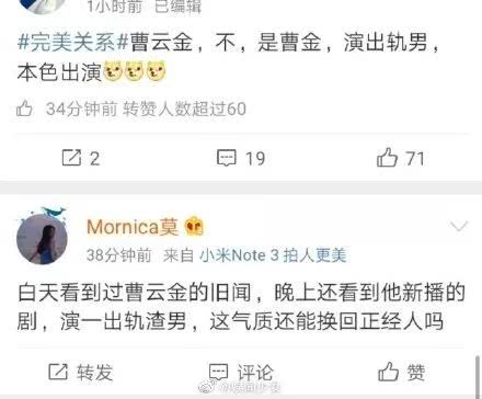 在剧中,出轨的男明星耿跃由曹云金(还是该叫他曹金?)饰演,耿跃和一位十八线女明星田璐约会被拍到,进而被曝光出轨。
