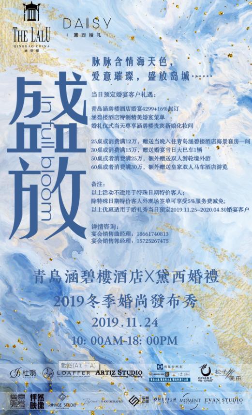 在2019年11月24日,青岛涵碧楼冬季婚礼秀,我们诚邀您的光临。