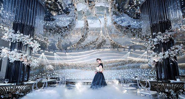 采用当下最流行的水晶元素,干冰打造“仙气”,网红雾霾蓝带来清爽,迎合冬季婚礼的氛围,流行时尚,打造独一无二的视觉体验。
